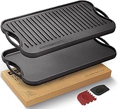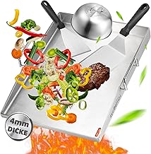 Bei der Materialstärke gilt: Mindestens 6-8 mm sind für eine gute Hitzespeicherung notwendig. Hochwertige Profi-Modelle haben oft 10-12 mm Dicke und bieten die beste Leistung, sind aber schwerer und teurer. Eine dickere Gusseisenplatte hält die Temperatur konstanter und erzeugt gleichmäßigere Grillergebnisse.