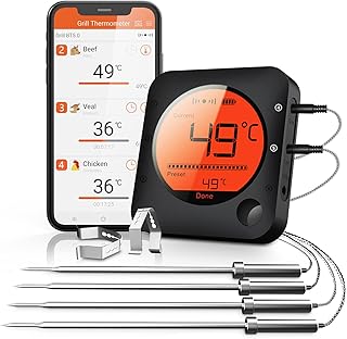 Für präzises Temperaturmanagement empfiehlt sich ein Bluetooth-Grillthermometer, das kontinuierlich sowohl die Garraum- als auch die Kerntemperatur überwacht. So haben Sie das Grillgut stets unter Kontrolle.