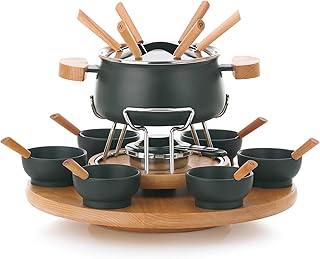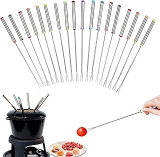 Hochwertige Fonduegabeln mit unterschiedlichen Farben oder Markierungen am Griff sind unerlässlich – so behält jeder Gast den Überblick. Die Gabeln sollten lang genug sein, um bequem in den Topf zu reichen, ohne dass man sich die Finger verbrennt.