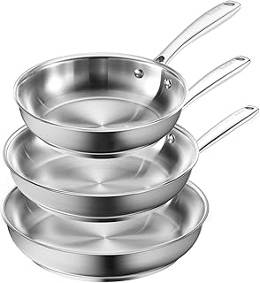Edelstahlpfannen – Anders als beschichtete Pfannen ermöglichen Edelstahl-Bratpfannen perfektes Anbraten mit intensiver Röstaromenbildung. Sie erlauben zudem das Deglaçieren direkt in der Pfanne. Profiköche schätzen besonders Modelle mit leicht gewölbtem Rand zum einfachen Schwenken und Wenden.
